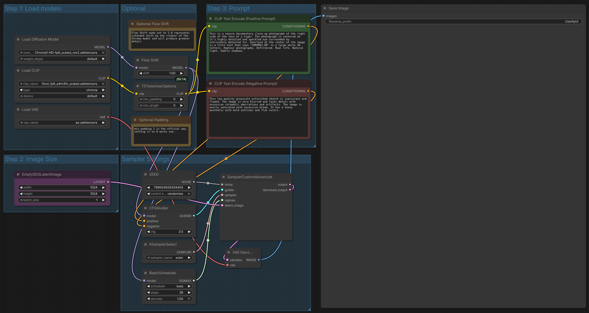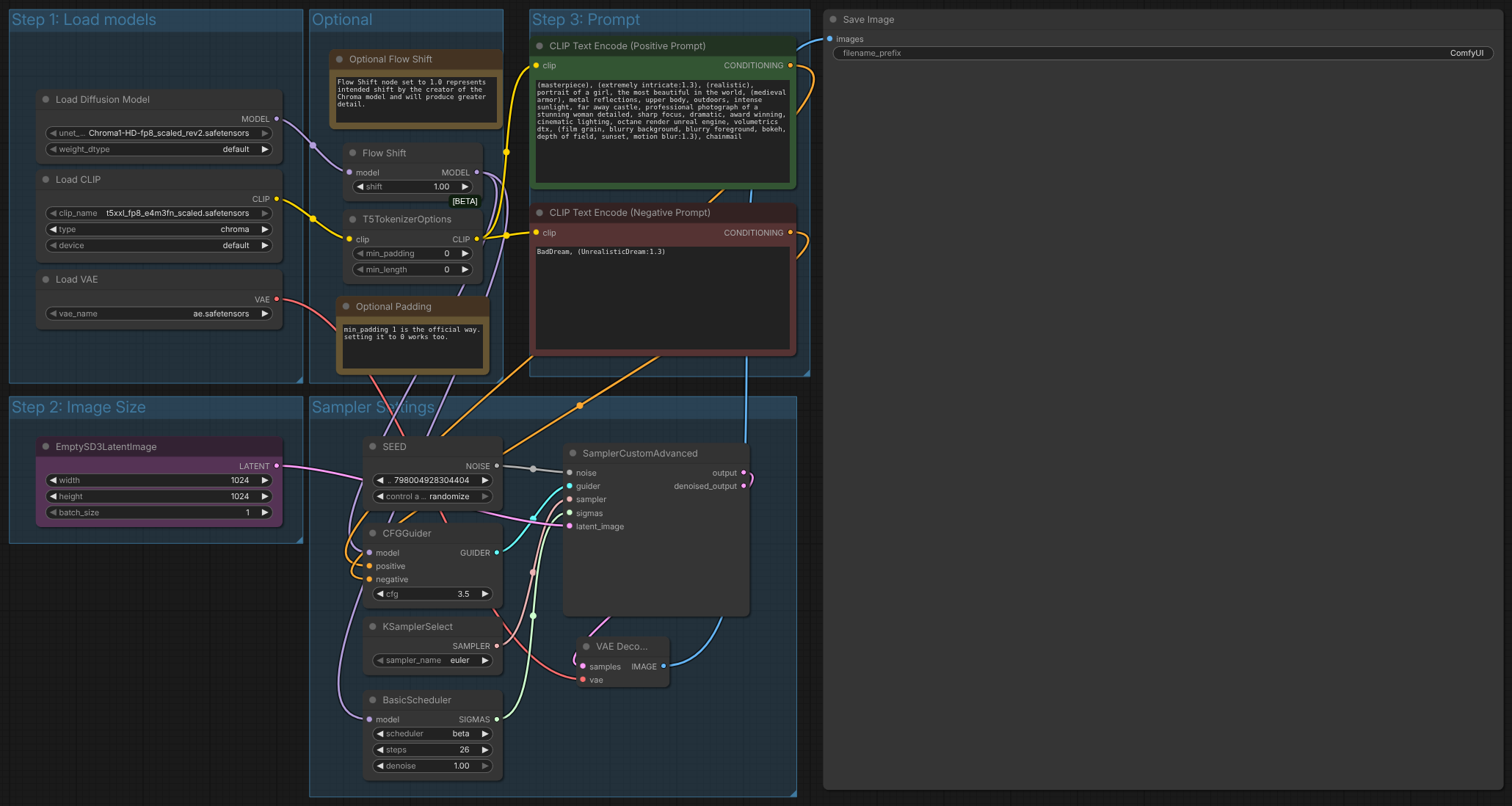 Π§ΡΠ΄Π΅ΡΠ½ΠΎ, Π²Π΅ΡΠ΅ ΠΈΠΌΠ°ΠΌΠ΅ ΡΠ°Π±ΠΎΡΠ΅Ρ ComfyUI, Π½Π΅ΠΊΠ° ΠΈΠ·ΠΏΠΎΠ»Π·Π²Π°ΠΌΠ΅ Π³ΠΎΡΠΎΠ² ΠΏΡΠΈΠΌΠ΅Ρ Π·Π° Π³Π΅Π½Π΅ΡΠΈΡΠ°Π½Π΅. ΠΠ° ΡΠ΅Π»ΡΠ° ΠΎΡ ΠΈΠ½ΡΠ΅ΡΡΠ΅ΠΉΡΠ° Π½Π° ΡΠ΅Π± ΠΏΡΠΈΠ»ΠΎΠΆΠ΅Π½ΠΈΠ΅ΡΠΎ ΡΠ΅ ΠΈΠ·Π±Π΅ΡΠ΅ΠΌ “Templates/Chroma Text to Image”. Π’Π°ΠΌ Π²ΠΈΠΆΠ΄Π°ΠΌΠ΅ ΠΌΠ΅Π½Ρ ΠΊΠ°ΡΠΎ ΡΠΎΠ²Π°: